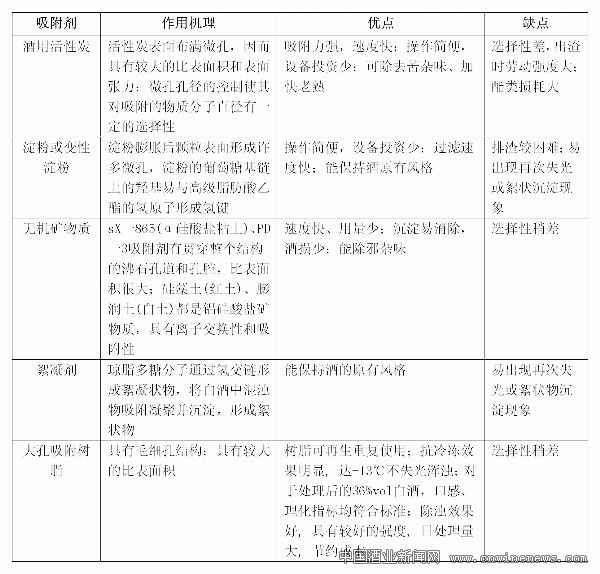 另外,降度用水的硬度對低度白酒渾濁也會產(chǎn)生很大的影響,生產(chǎn)時一定要使用硬度小于100mg/L,Ca、Mg含量低的加漿用水。做好了以上兩點,剩下的就要從過濾工藝的設計上去除渾濁的因素。主要的處理方法比較見表1。