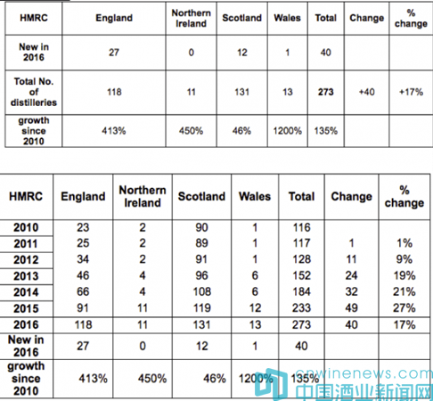 由英國國家會計師事務(wù)所的UHY Hacker發(fā)布的數(shù)據(jù)顯示,英國新增釀酒廠的數(shù)量略高,較上年同期增長了19%,這與行業(yè)上升發(fā)展的趨勢吻合,但與葡萄酒與烈酒貿(mào)易協(xié)會引用的英國稅務(wù)與海關(guān)總署發(fā)布的數(shù)據(jù)略有出入(據(jù)悉,要開辦一家釀酒廠,必須向該署申請獲得營業(yè)執(zhí)照)。