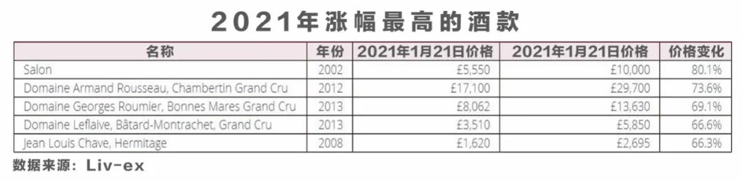 2021年價格漲幅最大的酒款